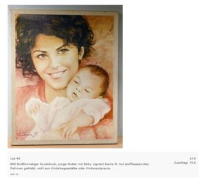 Der Kunstdruck Dania M., der aus einer Kinderarztpraxis oder einem Kindergarten stammen soll, wird für 70 Euro versteigert.