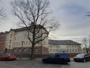 1950 wurde die Poliklinik Nord im ehemaligen Kinderheim Adelheidsruh in der Schopenhauerstraße 4, Halle (Saale) eröffnet. Das heutige Baudenkmal wurde 1938/39 gebaut (Architekt Wilhelm Jost). Foto: catatine/Wikimedia Commons (2020)