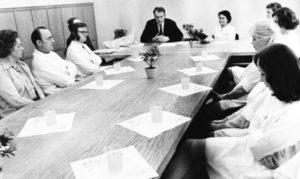 Das undatierte Foto zeigt eine Impression einer Kollektivbesprechung. S. Angelika sitzt vorn rechts.